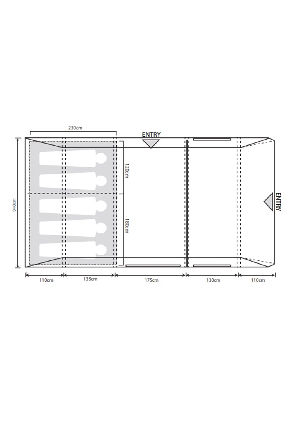• 230cm deep, darkened twilight micro polyester 5-person bedrooms with a 2/3 zip in divider