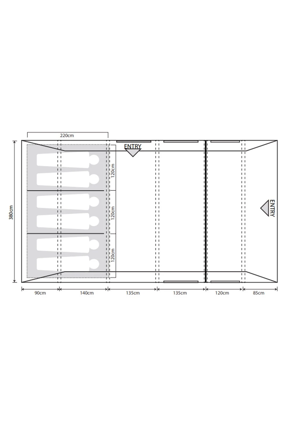 • Darkened Twilight micro polyester 6 person bedrooms with 2/2/2 divider