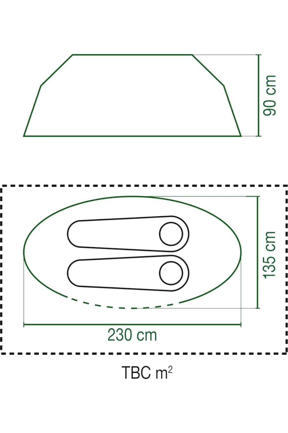 • Dimensions of Tent When Pitched: L230 x W135 x H90 cm