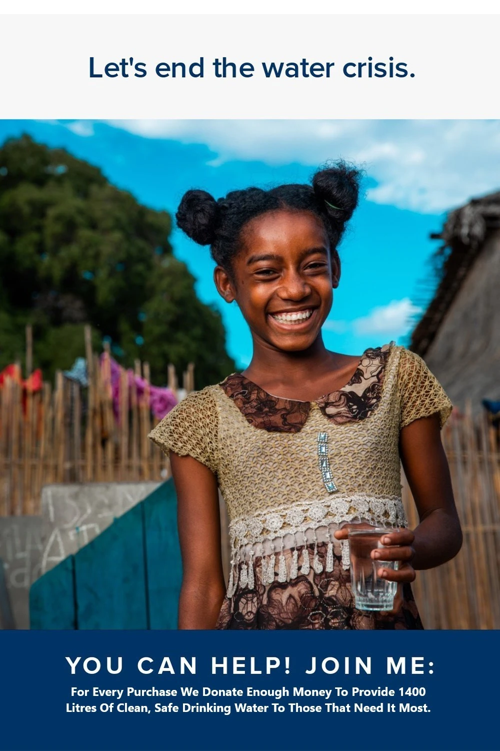 • Your purchase makes a difference by contributing 1400 litres of pure, clean, safe drinking water to those that need it most.