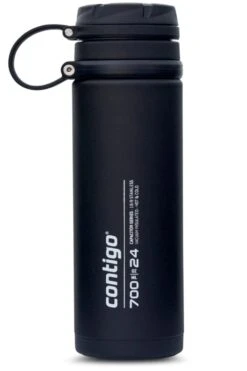 The Contigo Fuse is a straightforward insulated bottle that takes you to the next level. The Fuse is 100% leak-proof and with Thermalock double-wall vacuum insulated 18/8 Stainless Steel will keep drinks hot for up to 13 hours and cold for up to 30 hours. Ideal for any adventure, its rugged powder-coat finish gives you a textured grip even when your hands are wet or sweaty. The durable, flexible TPU lid tether means no loose parts and acts as a carry handle for on-the-go. Additionally, the skid-proof soft traction bottom pad eliminates clinking. It even works with carbonated beverages. Fully dishwasher safe, 100% BPA-free* and available in 700ml/24oz.