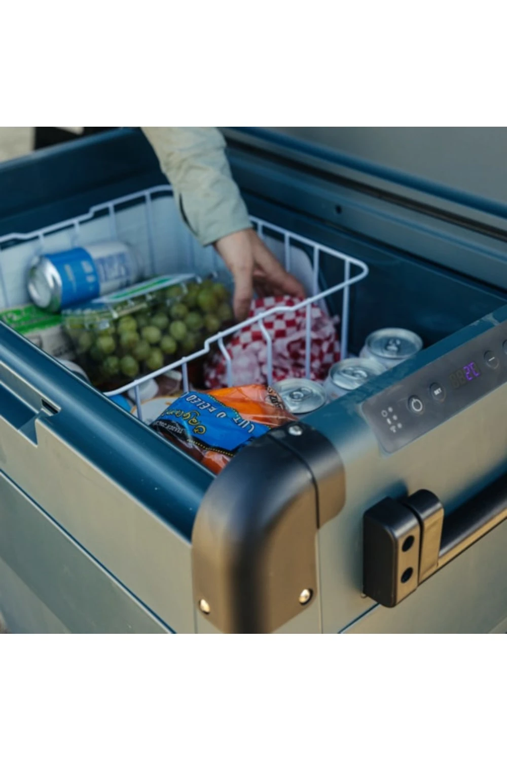 This ultimate electric cool box allows you to take more of the food and drink you love, wherever you go. Its robust design is built for tough outdoor use. Featuring a smartphone app to control the interior temperature, ergonomic foldable handles for carrying, and a digital display, this electric cool box is perfect for your next weekend adventure.