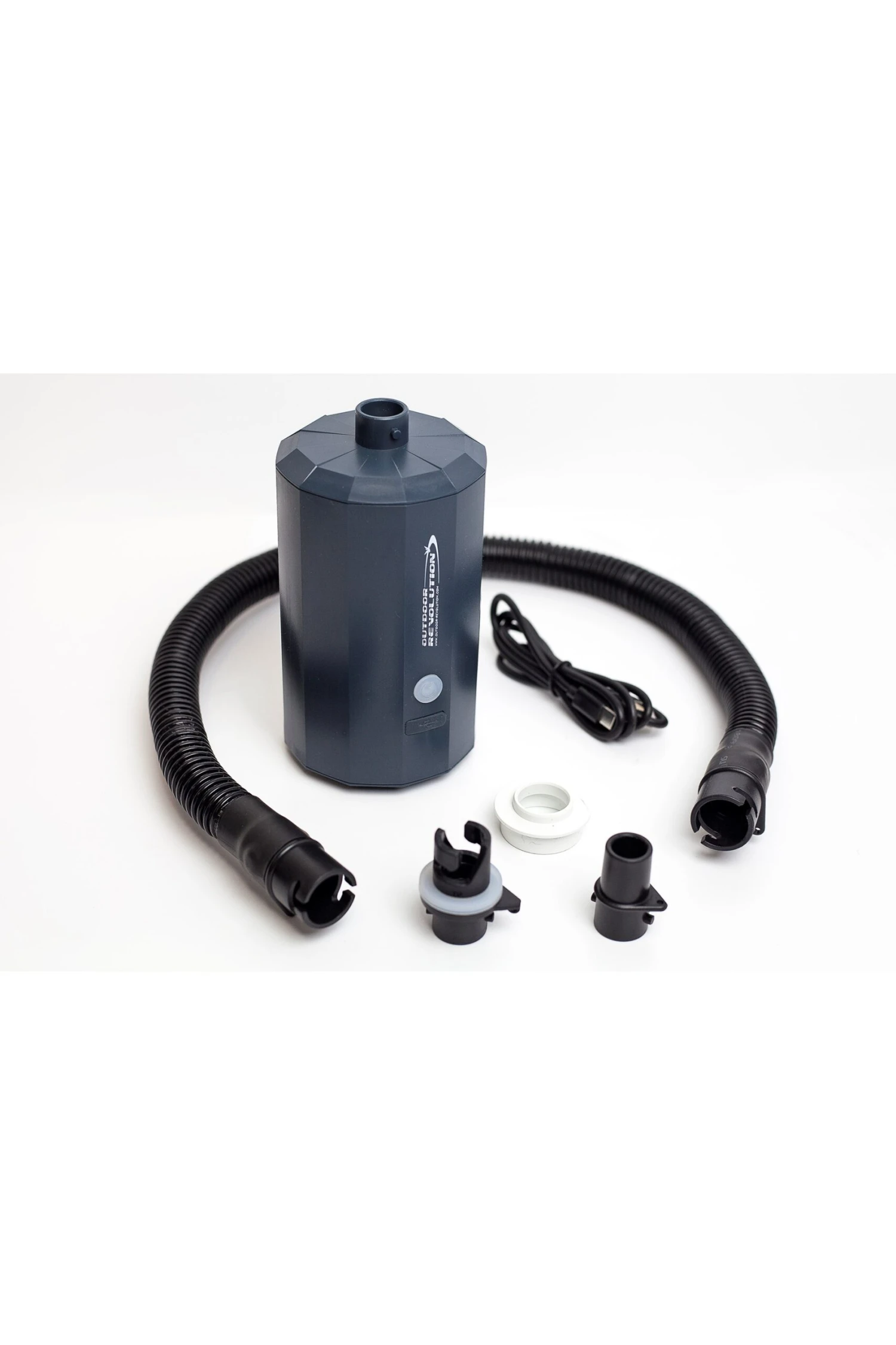 The Outdoor Revolution Rechargeable Tube Pump is high quality, compact & convenient rechargeable air pump, designed specifically for the inflation of air tents and air awnings with inflatable tubes to a maximum pressure capacity of 10psi. Constructed from robust ABS, this compact pump is supplied with adaptors to fit the Outdoor Revolution DSV type valve as well as the traditional Boston style valve.