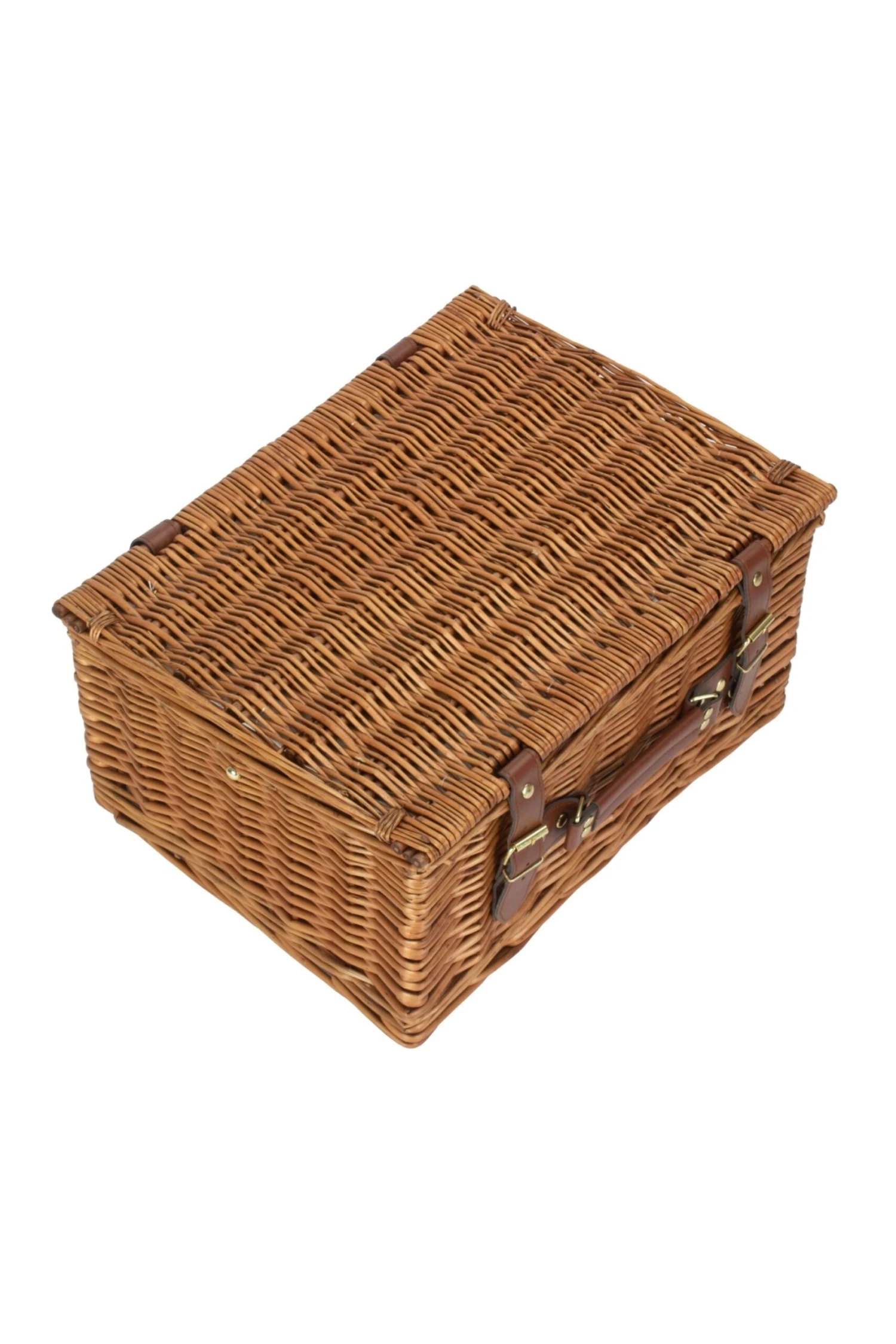 Fitted picnic basket finished in full light steamed willow and tan faux leather handles.