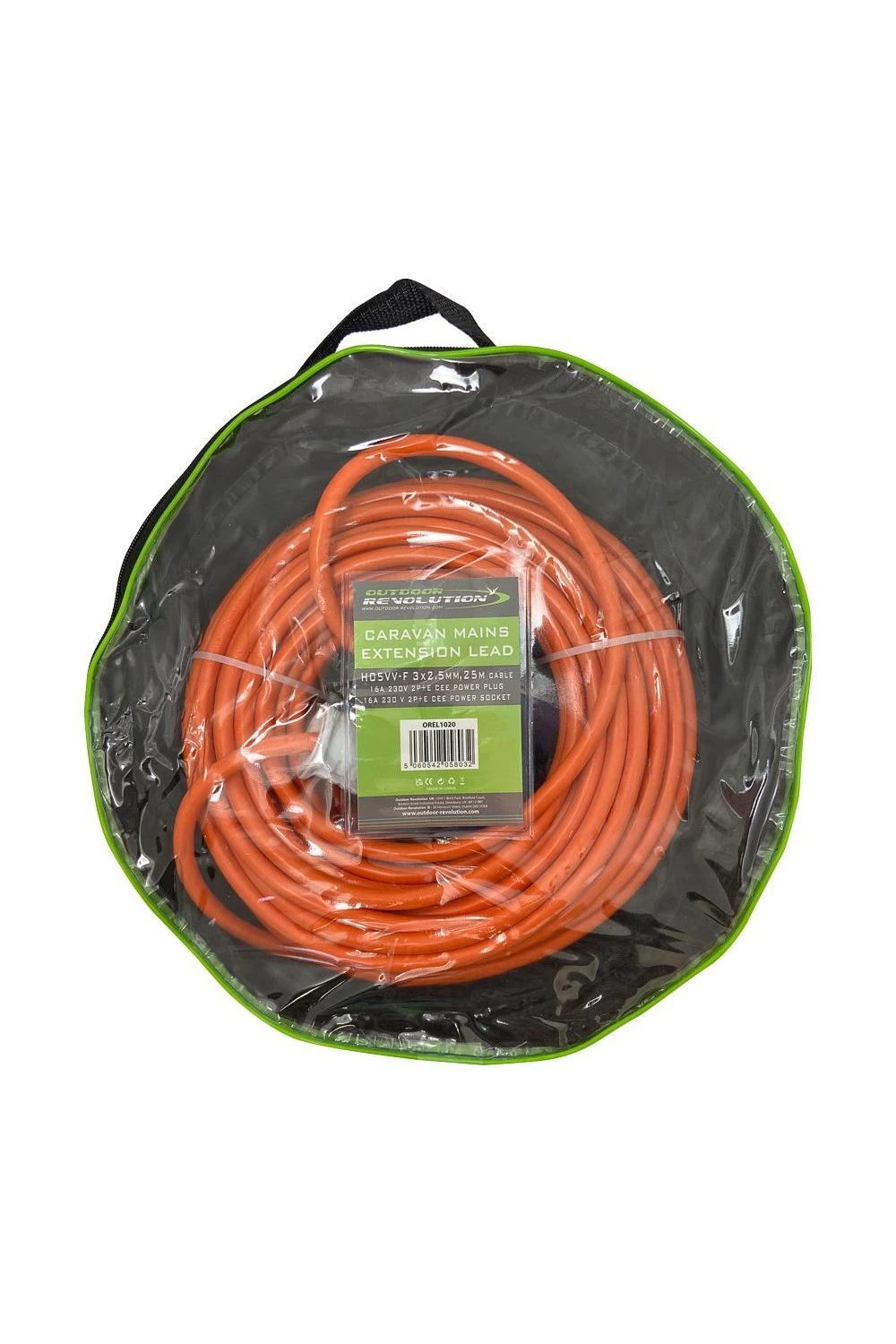 The Outdoor Revolution Caravan Mains Extension Lead is a 25m power extension cable featuring a heavy duty 2.5mm core 16A 230 V 2P+E CEE Power pug and socket. Predominantly used by Caravanners and recommended on most caravan sites. Can also be used for general outdoor use, garage, marine and with generators. Total Product weighs only 4.3 kg