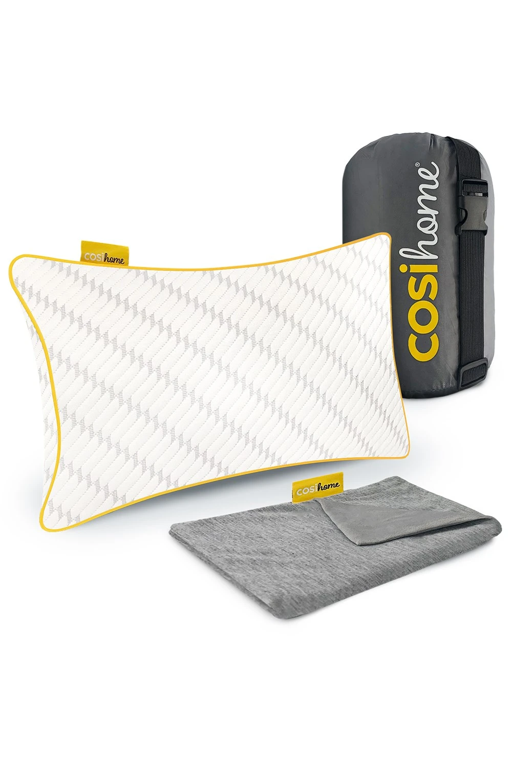 Our Travel Camping Pillow has a shape of a regular home pillow to adapt perfectly to the contours of your head, neck and back and provide superior comfort when travelling, camping or staying in hotels. It’s crafted from a hypoallergenic bamboo blend with a shredded memory foam filling that lets you adjust its height and comes with an extra pillowcase to allow for continuous use. Super lightweight and travel-friendly, the portable pillow fits into the included carry bag and can be clipped onto your luggage ensuring hands-free travelling.