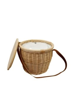 Constructed from wicker and wood, this insulated cool basket features a zip closure and a wooden lid that doubles as a serving tray or chopping board. Its high-quality craftsmanship and attractive appearance make it the perfect addition to any picnic. Please note that due to its natural material, dimensions may vary. Available in a variety of colors and finishes.