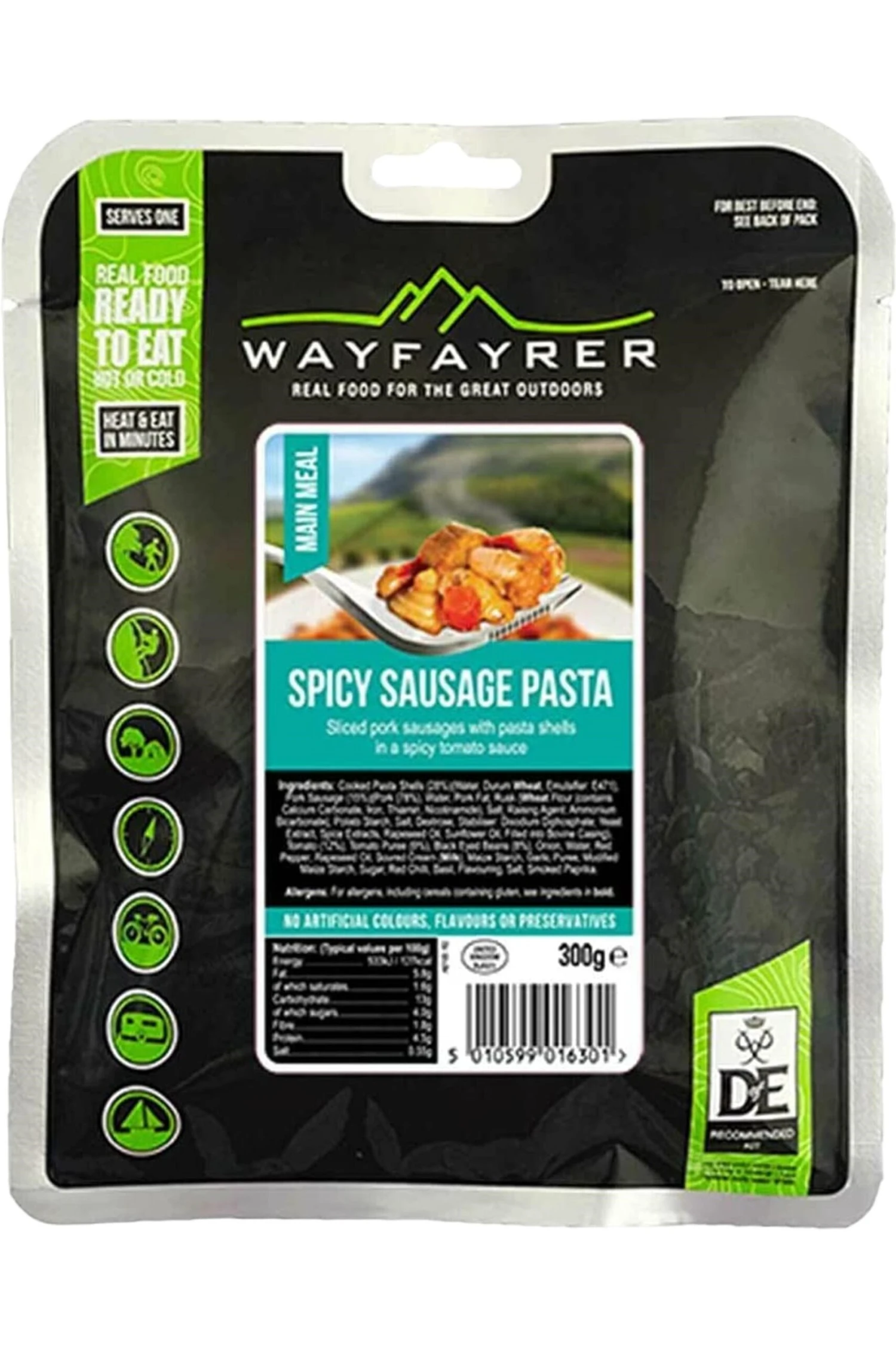 • Ingredients: Cooked Pasta Shells (28%)(Water, Durum Wheat, Emulsifier: E471), Pork Sausage (15%)(Pork (78%), Water, Pork Fat, Rusk (Wheat Flour (contains Calcium Carbonate, Iron, Thiamin, Nicotinamide), Salt, Raising Agent: Ammonium Bicarbonate), Potato Starch, Salt, Dextrose, Stabiliser: Disodium Diphosphate; Yeast Extract, Spice Extracts, Rapeseed Oil, Sunflower Oil, Filled into Bovine Casing), Tomato, Tomato Puree, Black Eyed Beans (8%), Onion, Water, Red Pepper, Olive Oil, Soured Cream (contains Milk), Maize Starch, Garlic Puree, Modified Maize Starch, Sugar, Red Chilli, Basil, Flavouring, Salt, Smoked Paprika.