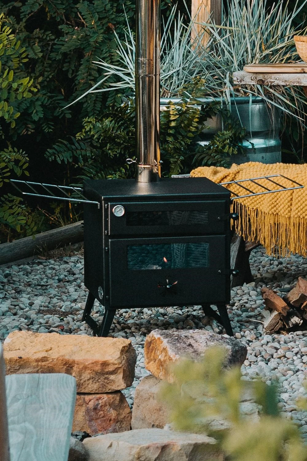 • Design: Wood-Burning Stove with Pizza Oven.